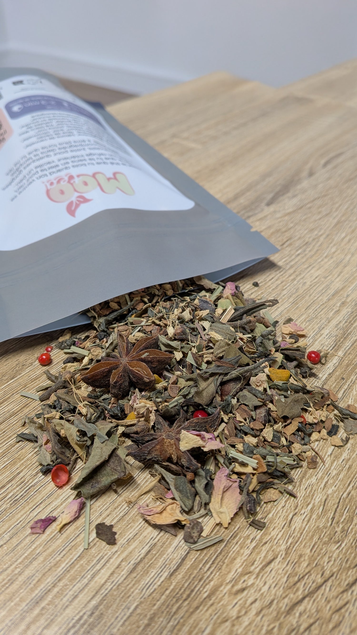 C'est 100% naturel ou bio. On utilise de vraies feuilles de thé (entières, pas de la poussière), de vrais morceaux de fruits, de vraies pétales et de vraies épices. Zéro arôme artificiel, zéro additif imprononçable. Ce que tu bois existe vraiment dans la nature.